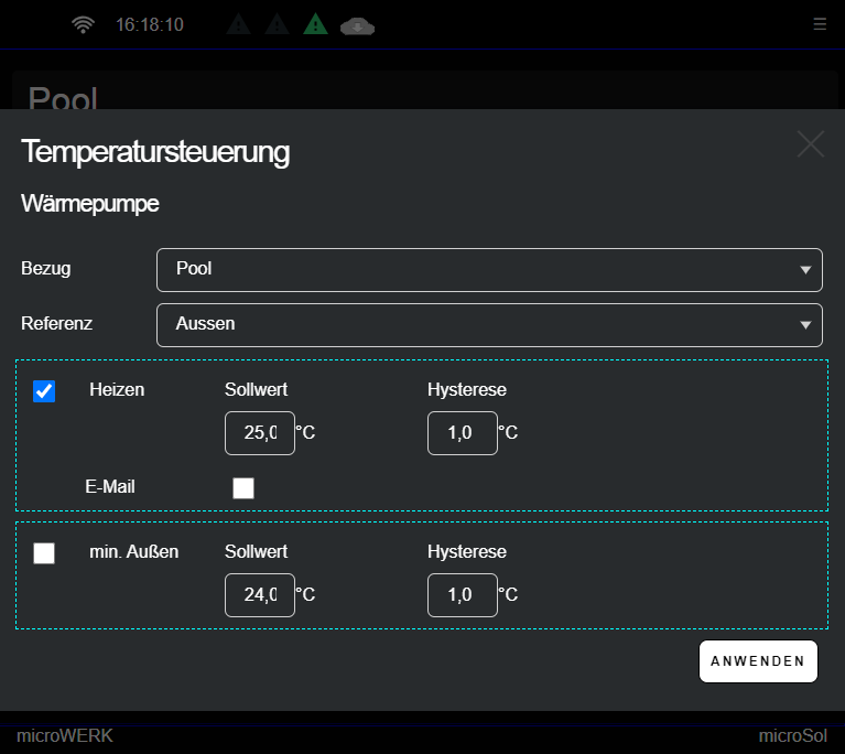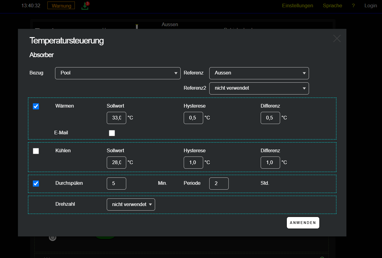 - Temperaturdifferenzregler für die Erwärmung / Beheizung des Pools